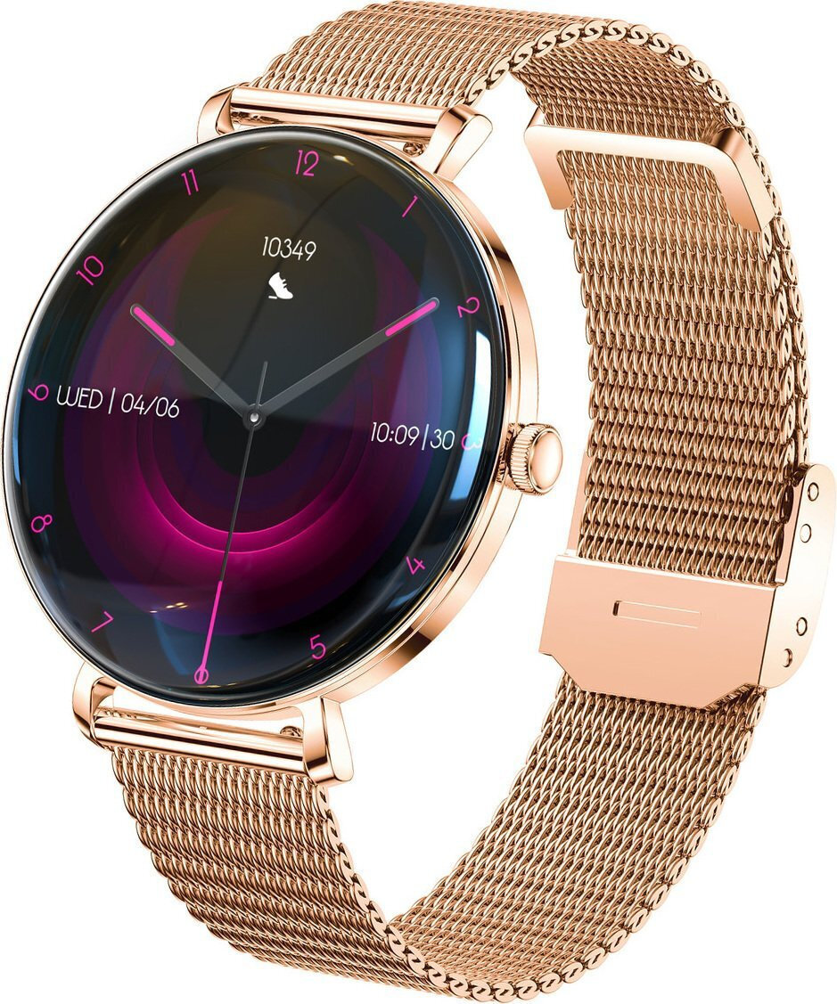 Το smartwatch Forever GSM193533 σε κομψό ροζ χρώμα αποτελεί μια ισορροπημένη συνδυαστική λύση λειτουργικότητας και στυλ, σχεδιασμένο για χρήστες που αναζητούν μια προσιτή έξυπνη συσκευή με βασικά χαρακτηριστικά για την καθημερινότητα. Αυτό το έξυπνο ρολόι διαθέτει συνδεσιμότητα Bluetooth, επιτρέποντας εύκολη συγχρονισμό με smartphones για λήψη ειδοποιήσεων σε πραγματικό χρόνο, διαχείριση κλήσεων και μηνυμάτων χωρίς να χρειάζεται να βγάλουν το τηλέφωνο. Η οθόνη αφής με τεχνολογία AMOLED προσφέρει καθαρή απεικόνιση και ζωντανά χρώματα, εξασφαλίζοντας καλό επίπεδο αντίθεσης και ευκρίνειας ακόμη και σε εξωτερικούς χώρους. Μεταξύ των βασικών λειτουργιών περιλαμβάνεται ένας ενσωματωμένος παλμογράφος για συνεχή παρακολούθηση καρδιακού ρυθμού, ένα χρήσιμο εργαλείο για τον έλεγχο της φυσικής δραστηριότητας και της υγείας από τον καρπό. Επιπλέον, ο σχεδιασμός περιλαμβάνει λουράκι με στίγματα που ενισχύει την άνεση και την εφαρμογή, προσθέτοντας μια μοντέρνα και προσαρμόσιμη πινελιά στην απόχρωση ροζ χρυσού. Αυτή η έκδοση έρχεται εξοπλισμένη με τυπική ευρωπαϊκή πρίζα (EU), διευκολύνοντας τη φόρτιση σε περισσότερα σπίτια και χώρους στην Ευρώπη. Συνολικά, αυτό το smartwatch αποτελεί μια πρακτική και λειτουργική επιλογή για όσους εκτιμούν την βασική αθλητική παρακολούθηση, την απλή συνδεσιμότητα και ένα σύγχρονο, θηλυκό σχεδιασμό. Τοποθετείται ως μια ευέλικτη συσκευή που συνδυάζει σύγχρονη τεχνολογία με ελκυστική αισθητική για το ευρύ κοινό.