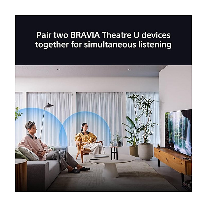 The Sony HT-AN7 (also known as BRAVIA Theater U) is an innovative wireless wearable neckband speaker that transforms personal audio experiences. With a flexible open-air design, it sits comfortably on the shoulders and provides a immersive audio experience without disturbing others.