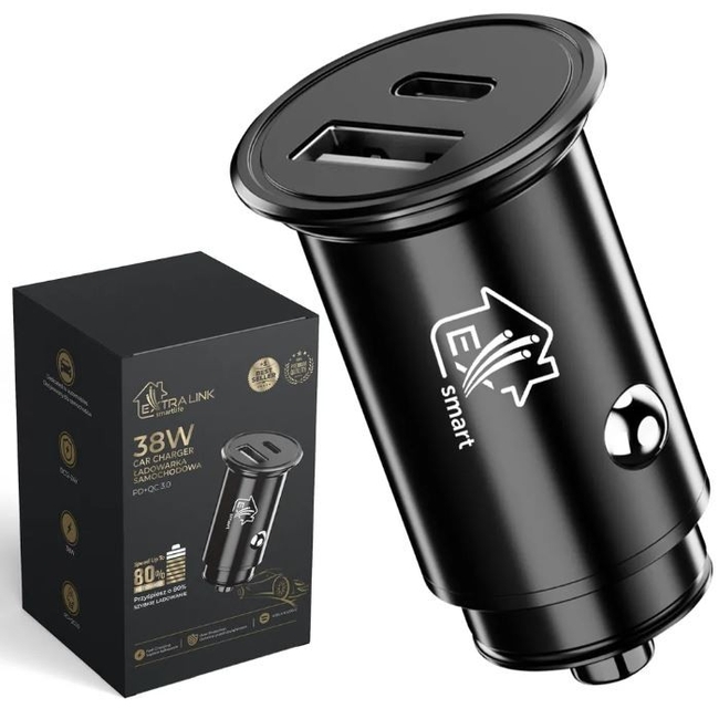Φορτιστής Αυτοκινήτου Extralink ?adowarka Do Samochodu Smart Life 38w, 1x Usb-C, 1x Usb-A Czarna