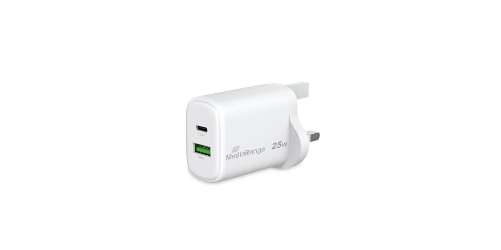 Φορτιστής MediaRange 25W 2-Port 1x USB-A/1x USB-C UK GaN, ws