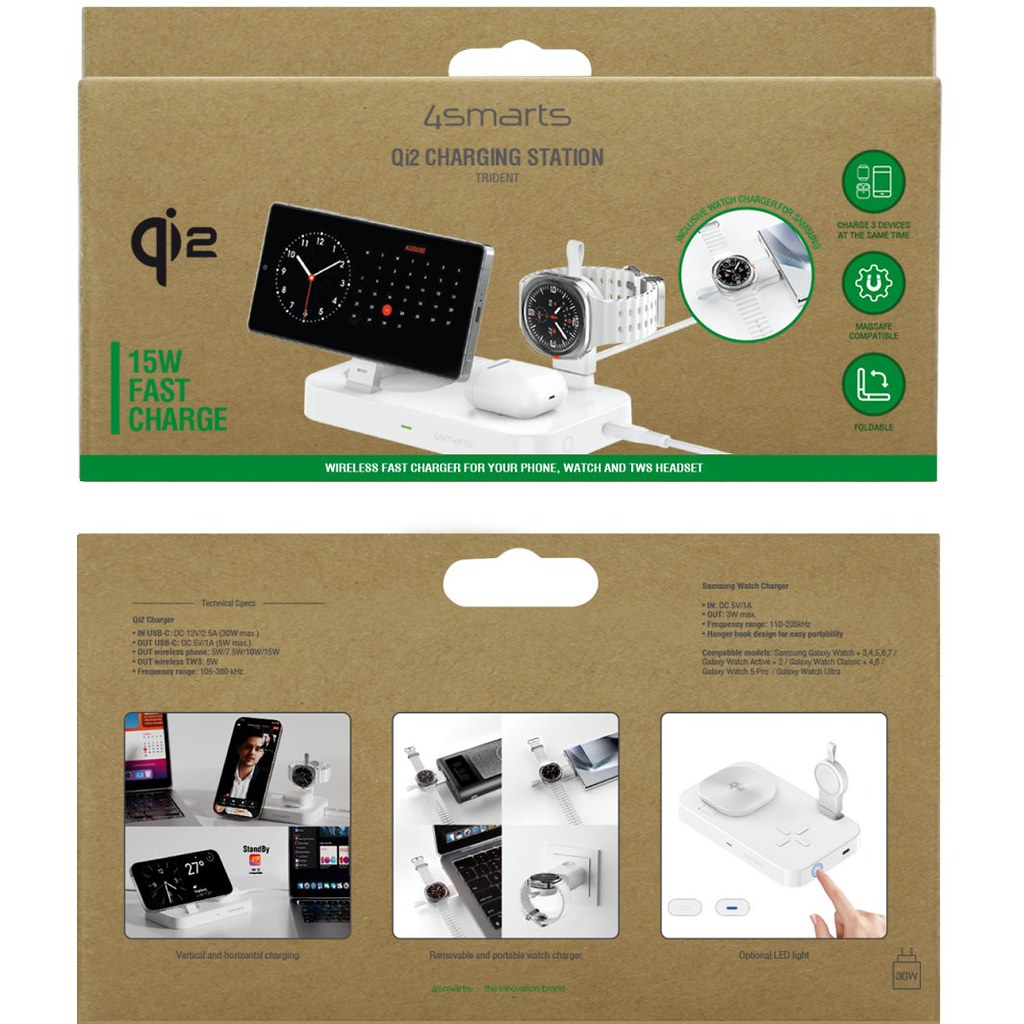 Φορτιστής Πρίζας 4Smarts Qi2 Trident + Samsung Watch White