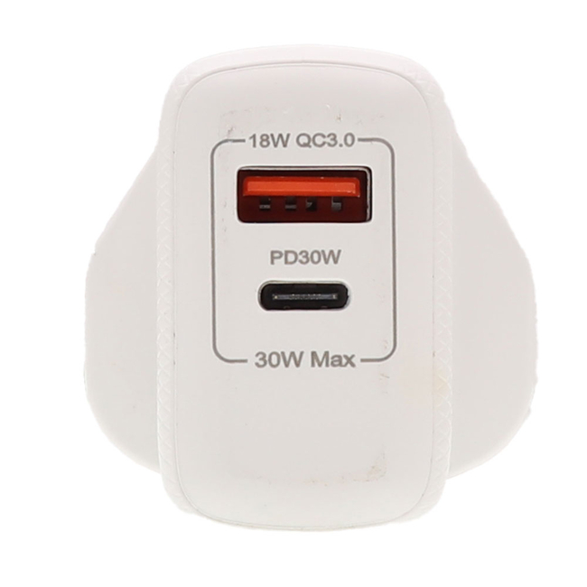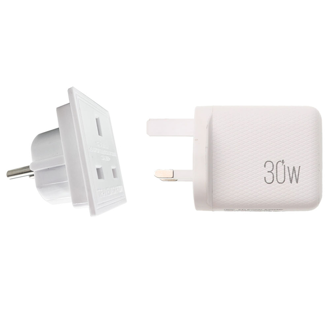 Φορτιστής Πρίζας Lamtech 2-In-1 Eu/Uk USB Qc3.0/Type-C With Adapter 30W