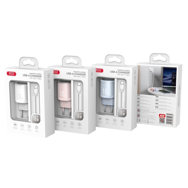 Φορτιστής Πρίζας XO L157(EU) QC3.0 18W Καλώδιο Type-C Ροζ