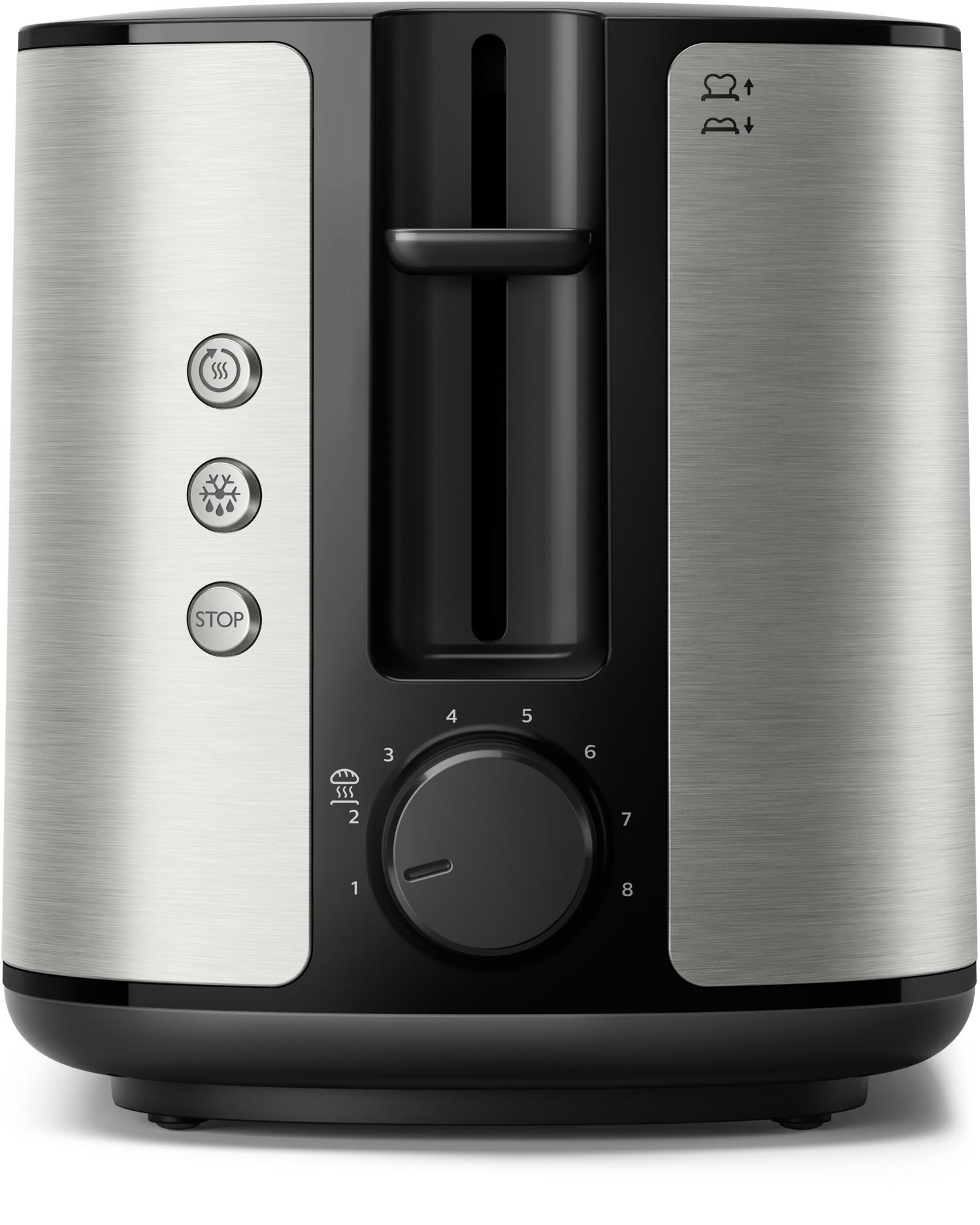 The Philips HD2650/90 Viva Collection Toaster is a fully metal 2-slice toaster that ensures even browning for a variety of breads. Whether you are toasting hand-cut, pre-sliced, thick, thin, fresh, or even frozen bread, this toaster has you covered.