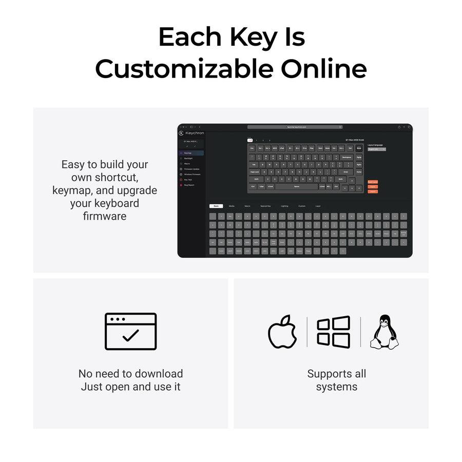 The Keychron Q1 Max Q1M-M4 (RGB/Carbon Black) is an exceptional premium 75% wireless mechanical keyboard designed for both gamers and professionals. Its all-aluminum body, precision-engineered with a full CNC machining process, offers unmatched durability and aesthetics.