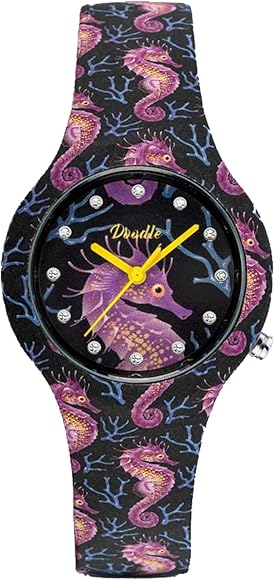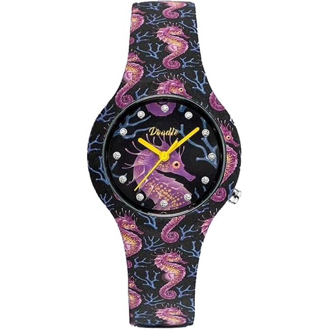 WOMEN WATCH DOODLE DO35020 (34MM). Type of mechanism: QUARTZ. Display: ANALOGICAL. Material of case: SILICONE. Colour of case: MULTICOLORED. Material of bracelet: SILICONE. Colour of bracelet: MULTICOLORED. Dial Colour: MULTICOLORED. Glass type: MINERAL. Clousure: BUCKLE. Diameter of dial: 34MM. Submersible: NO