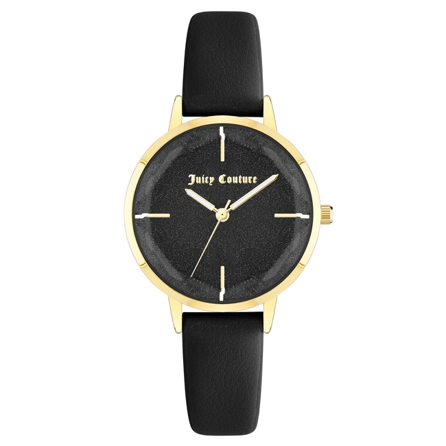 WOMEN WATCH JUICY COUTURE JC1326GPBK (34 MM). Type of mechanism: QUARTZ. Display: ANALOGICAL. Material of case: METAL. Colour of case: GOLDEN. Material of bracelet: POLIPRIEL. Colour of bracelet: BLACK. Dial Colour: BLACK. Glass type: MINERAL. Clousure: BUCKLE. Diameter of dial: 34 MM. Submersible: NO