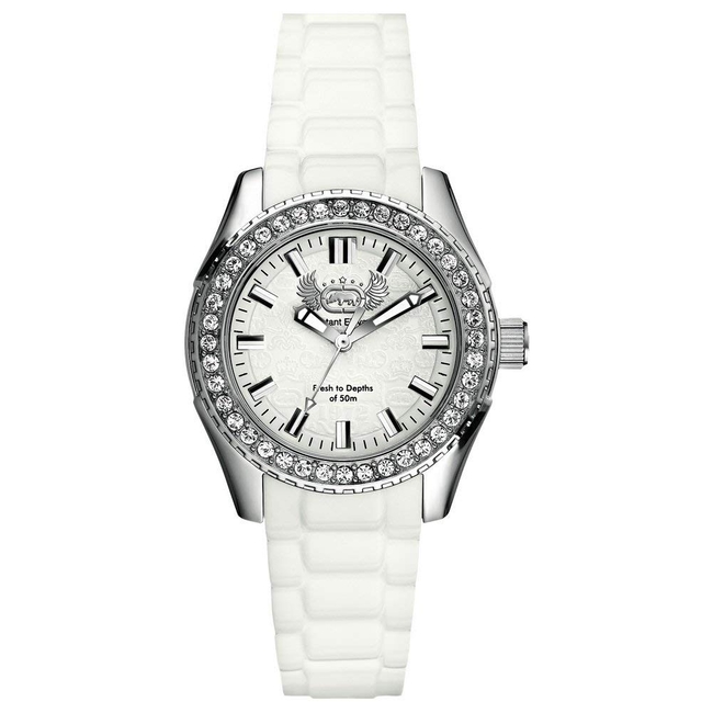WOMAN WATCH MARC ECKO E11599M2 (36MM). Type of mechanism: QUARTZ. Display: ANALOGIC. Material of case: STAINLESS STEEL. Colour of case: SILVER. Material of bracelet: SILICONE. Colour of bracelet: WHITE. Dial Colour: WHITE. Glass type: MINERAL. Clousure: BUCKLE. Diameter of dial: 36MM. Submersible: 5ATM