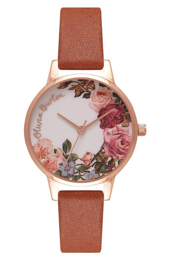 Γυναικείο Ρολόι Olivia Burton Ob16Er05 (30M) Δερμάτινο Λουράκι Καφέ