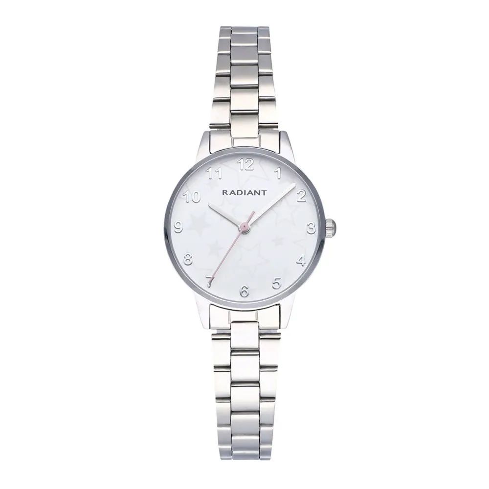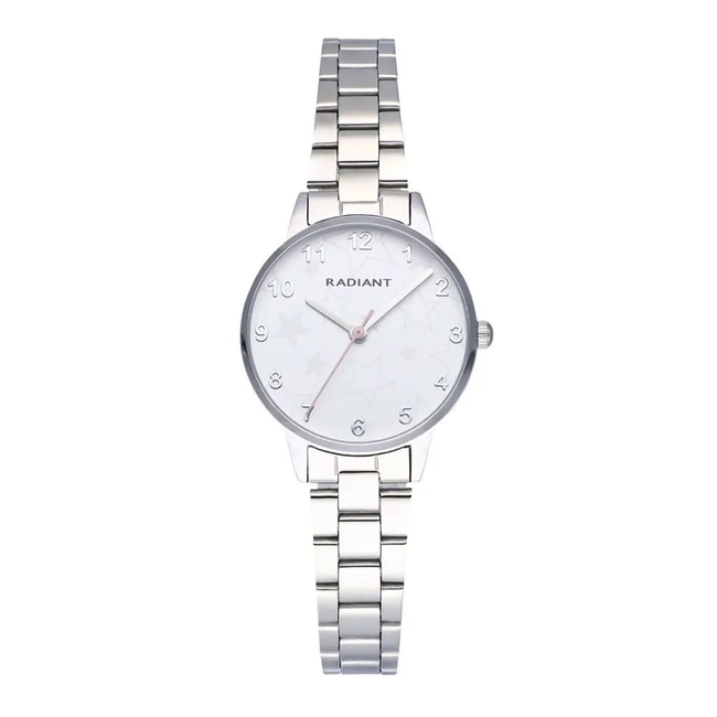 WOMEN WATCH RADIANT RA554203 (28MM). Type of mechanism: QUARTZ. Display: ANALOGICAL. Material of case: METAL. Colour of case: GREY. Material of bracelet: METAL. Colour of bracelet: GREY. Dial Colour: WHITE. Glass type: MINERAL. Clousure: PRESSURE. Diameter of dial: 28MM. Submersible: NO