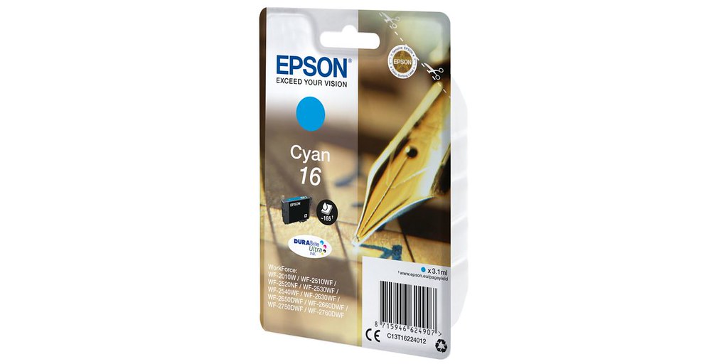 The Epson T1622 (C13T16224012) is an original cyan ink cartridge designed specifically for inkjet printers. With a capacity of 3.1 ml, this cartridge delivers impressive performance. It offers a page yield of approximately 175 pages at 5% coverage, making it an ideal choice for everyday printing needs.