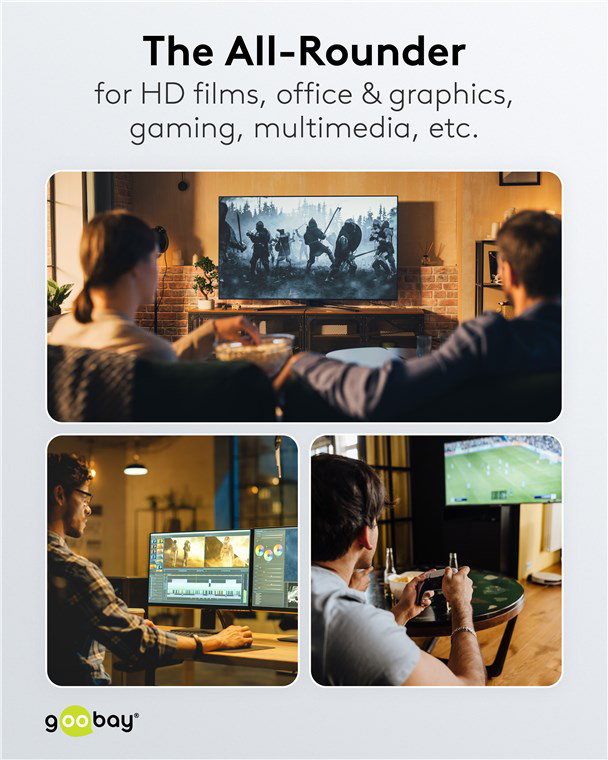 Τα καλώδια της Goobay κατασκευάζονται από ποιοτικά υλικά, με τις υψηλότερες τεχνικές προδιαγραφές, προσφέροντας αξιόπιστη λειτουργία υψηλής απόδοσης, με αντοχή στον χρόνο.
