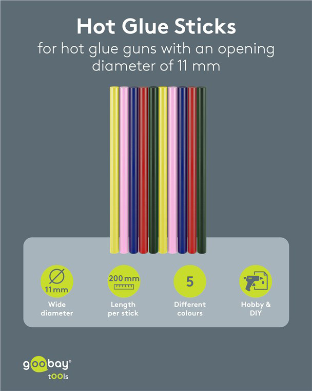 GOOBAY Silicone Glue Sticks 77856 11mm 10 Pieces in 5 Colors