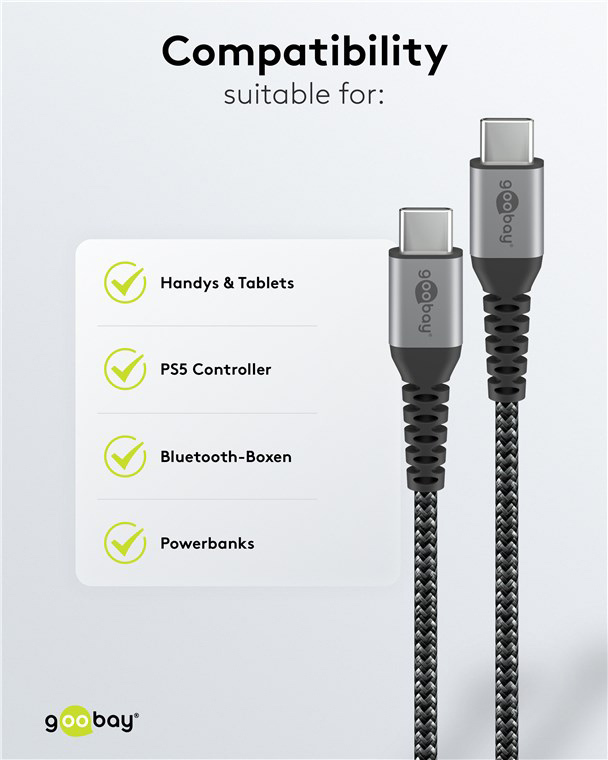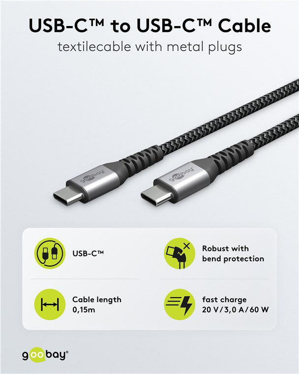 Καλώδιο USB-C της Goobay με υποστήριξη μεταφοράς δεδομένων έως 480Mbps και υψηλή απόδοση φόρτισης έως 60W.