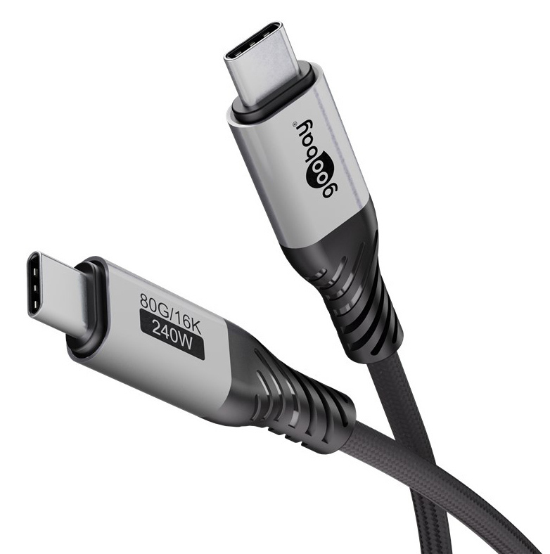 Καλώδιο USB-C της Goobay με εξαιρετικά γρήγορους ρυθμούς μεταφοράς δεδομένων έως 80Gbps και υψηλή απόδοση φόρτισης έως 240W.