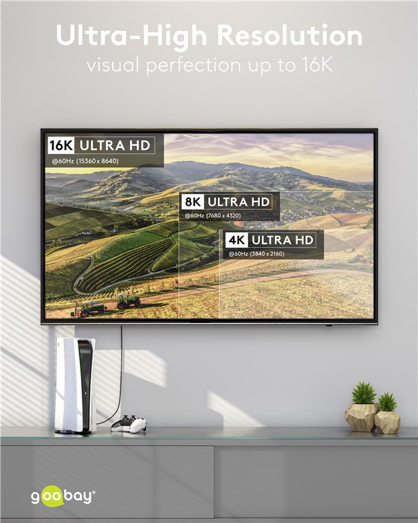 -ανάλυση: 16K/60Hz (15360x8460) Quad UHD, 8K/60Hz (7680x4320) Full UHD, 4K/120Hz (3840x2160) UHD, HDR