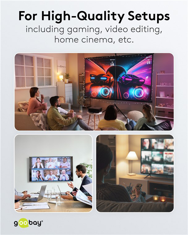 Τα καλώδια της Goobay κατασκευάζονται από ποιοτικά υλικά, με τις υψηλότερες τεχνικές προδιαγραφές, προσφέροντας αξιόπιστη λειτουργία υψηλής απόδοσης, με αντοχή στον χρόνο.