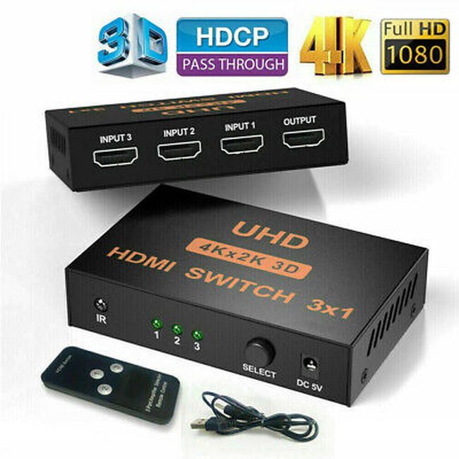 HDMI SWITCH METAL 3IN / 1OUT 4K x 2K REMOTE
