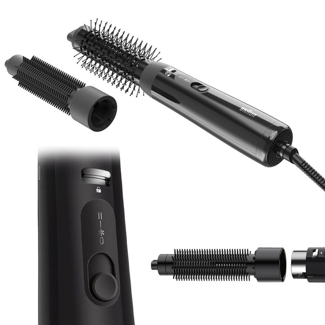 Designed for versatility, the Braun BRAS150E includes two secure-locking attachments for various styling options. It's the ideal tool for anyone looking to enhance their hair styling routine, providing a balance of performance and convenience.