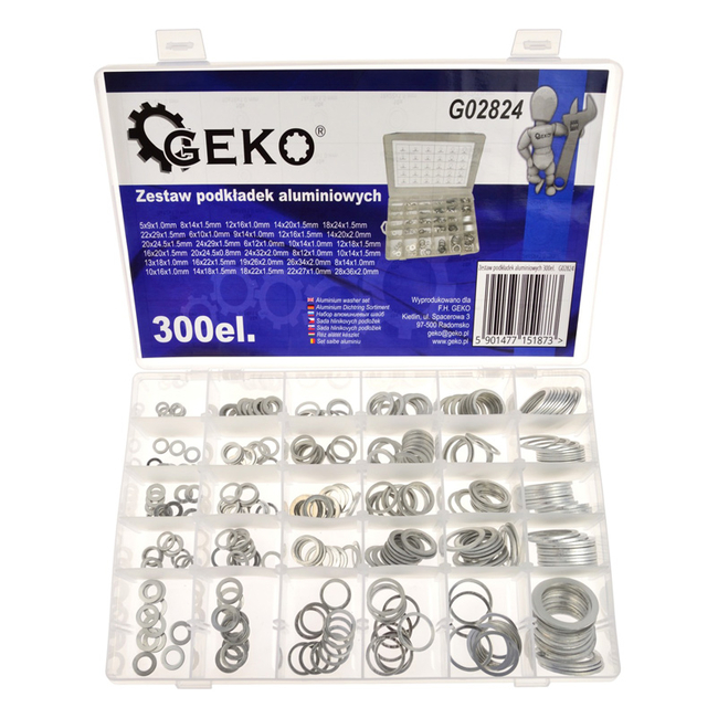 GEKO σετ αλουμινένιες ροδέλες G02824, διάφορα μεγέθη, 300τμχ