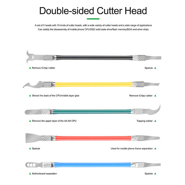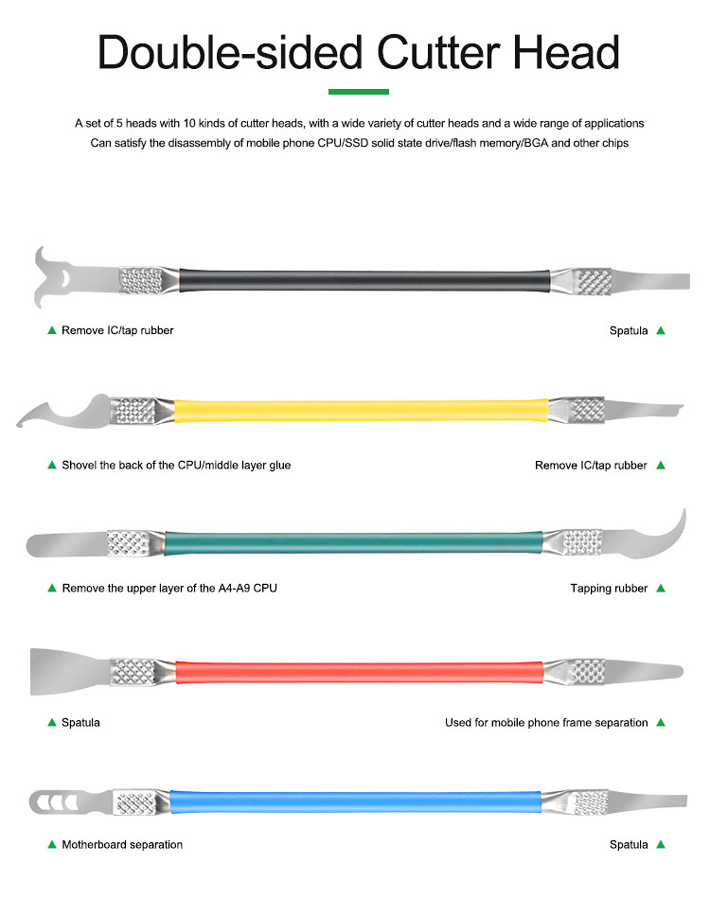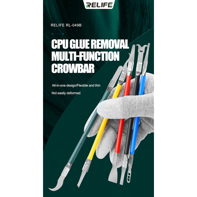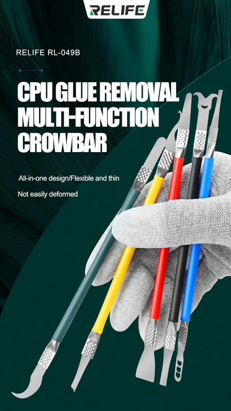 Σετ εργαλείων ανοίγματος με διπλή κεφαλή από την Relife, κατάλληλα για εργασίες όπως αφαίρεση CPU και chip σε επισκευές smartphone.