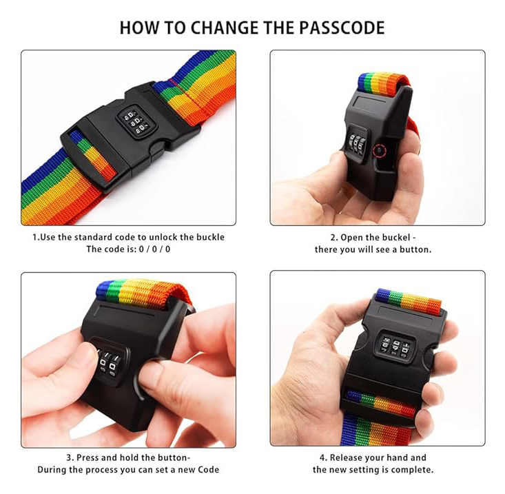 HOME USE ιμάντας βαλίτσας HUH-0241 με λουκέτο συνδυασμού, ρυθμιζόμενος, 2m, πολύχρωμος