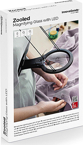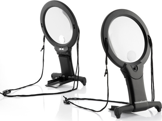Ένας μεγεθυντικός φακός με φως LED με πρωτότυπο σχέδιο hands-free που το καθιστά εύκολο στη χρήση για την εκτέλεση διαφόρων εργασιών με απόλυτη άνεση. Διαθέτει κύριο φακό με μεγέθυνση x2 και μικρότερο δευτερεύοντα φακό για να βλέπετε με μεγαλύτερη μεγέθυνση (x5). Επιπλέον, το φως LED του επιτρέπει καλύτερη οπτική προβολή. Το φως LED ανάβει και σβήνει με το κουμπί on/off και λειτουργεί με 3 μπαταρίες AAA που δεν περιλαμβάνονται. Ένα άλλο από τα μεγάλα πλεονεκτήματά του είναι ο σχεδιασμός hands-free και πολλαπλών θέσεων καθώς μπορεί να τοποθετηθεί σε διαφορετικές θέσεις προσαρμόζοντας στις ανάγκες και τις προτιμήσεις ανά πάσα στιγμή. Περιλαμβάνει ένα ρυθμιζόμενο κορδόνι για να το κρεμάτε εύκολα στο λαιμό. Η αντιολισθητική του βάση παρέχει σταθερό κράτημα. Αυτός ο μεγεθυντικός φακός ανάγνωσης πολλαπλών χρήσεων είναι ιδανικός για ανάγνωση, ράψιμο, χειροτεχνία, μαστορέματα και επισκευές κ.λπ.