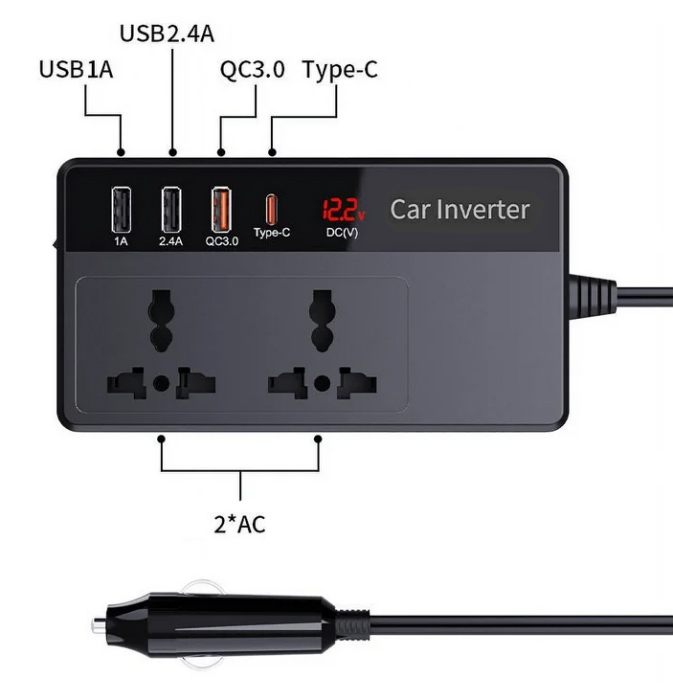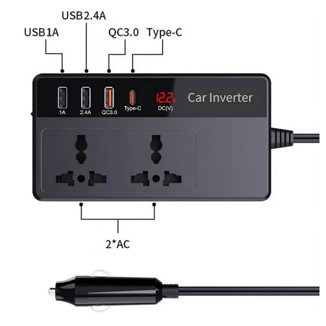 Με ισχύ 200W, συνδέεται εύκολα στον αναπτήρα του οχήματος (12V DC) και σας επιτρέπει να φορτίζετε ή να τροφοδοτείτε μικροσυσκευές όπως laptop, φορτιστές, μικρά εργαλεία, αλλά και smartphone ή tablet μέσω θύρας USB.
