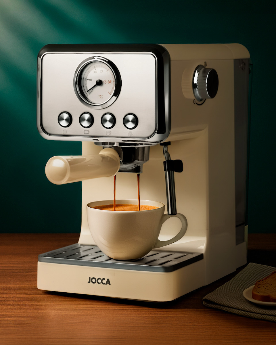 JOCCA Retro Espresso Coffee Machine 15 Bars with Removable Deposit 1.7L Creme