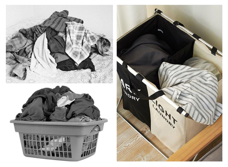 Καλάθι απλύτων με 2 σάκους και σχεδιασμό που χρησιμεύει ως ταξινομητής για λευκά ή σκούρα ρούχα και καθιστά τη διαδικασία του πλυσίματος πολύ ευκολότερη.
