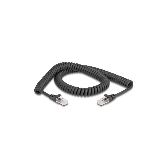 The Delock RJ45 Coiled Cable (Model 87993) is designed with flexibility and practical functionality in mind. This network patch cable comes in a spiral design that not only enhances ease of use but also saves valuable storage space.