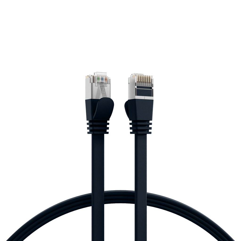 The EFB RJ45 Flat Patch Cable U/UTP, Cat.6A, PVC, 2.0m, Black is a high-performance network cable specifically engineered for 10 Gigabit Ethernet transmission. Its design incorporates several crucial features that enhance its functionality and usability.