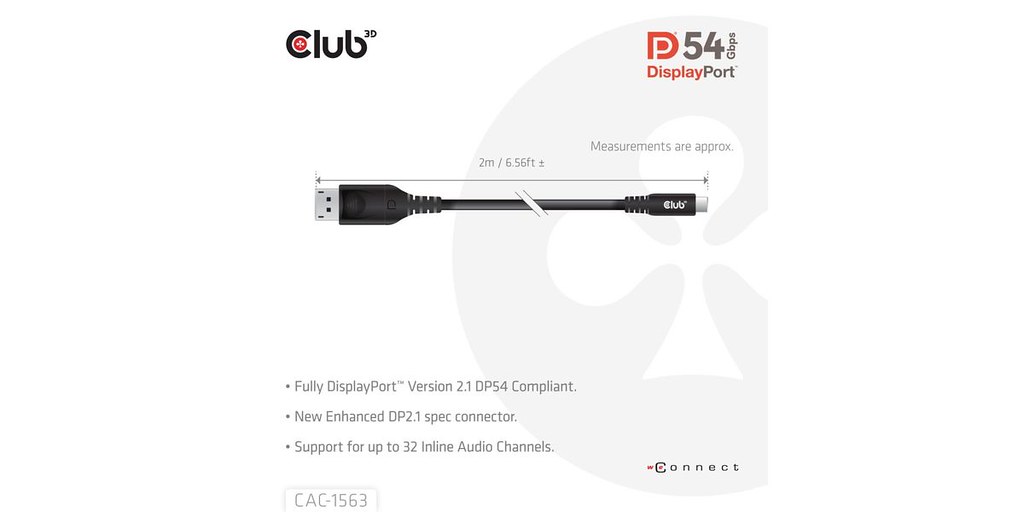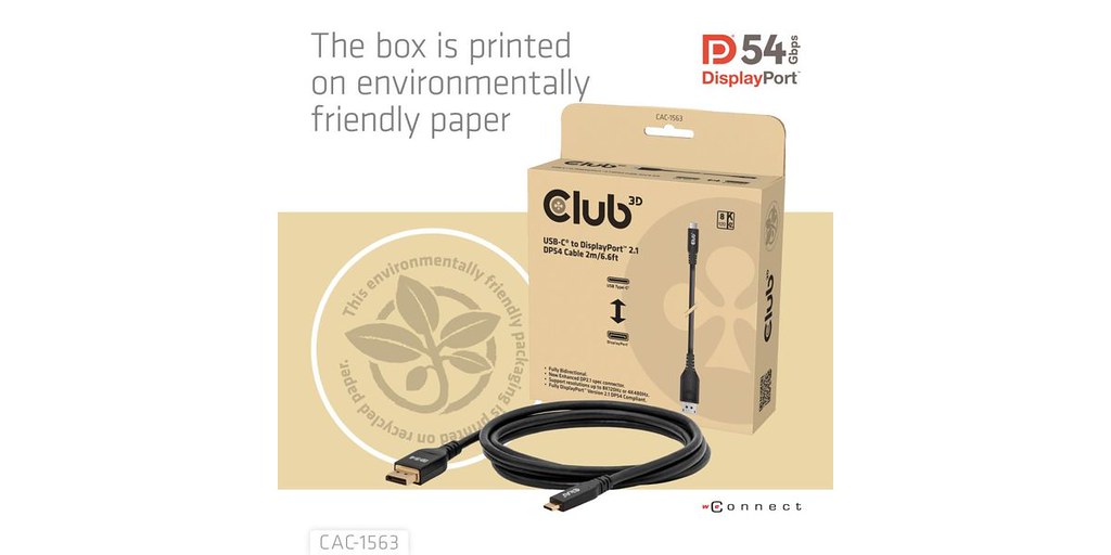 The Club 3D CAC-1563 is a premium bidirectional USB-C® to DisplayPort™ 2.1 DP54 cable that represents a significant advancement in display connectivity. It is designed for various applications, connecting USB-C® equipped laptops to DisplayPort® monitors, or alternatively, allowing a DisplayPort® GPU to link to a USB-C® monitor.