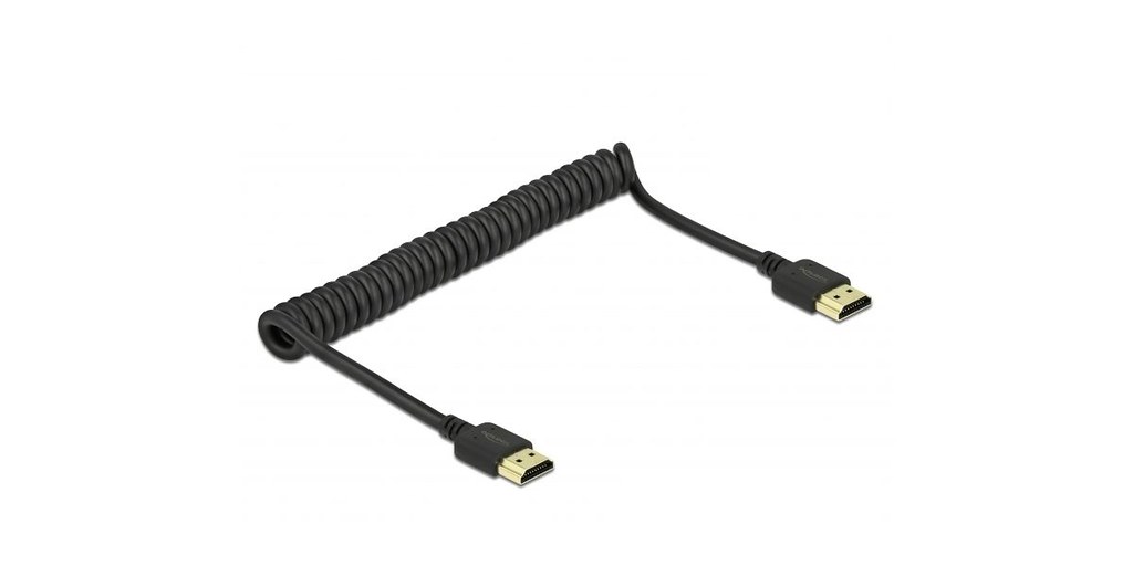 The Delock HDMI Coiled Cable 4K 60 Hz is designed to deliver an exceptional viewing experience with support for Ultra HD 4K resolution at 60 Hz. This cable features a unique coiled spiral design that not only enhances storage convenience but also minimizes cable clutter.