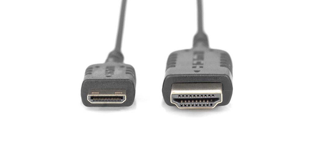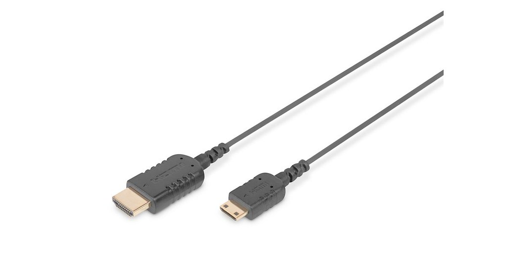 Featuring a Mini HDMI (Type C) connector on one end and a Standard HDMI (Type A) connector on the other, it allows seamless connections between devices like cameras, tablets, and laptops to standard HDMI displays or projectors. The HighFlex design ensures great flexibility, allowing for use in tight spaces.