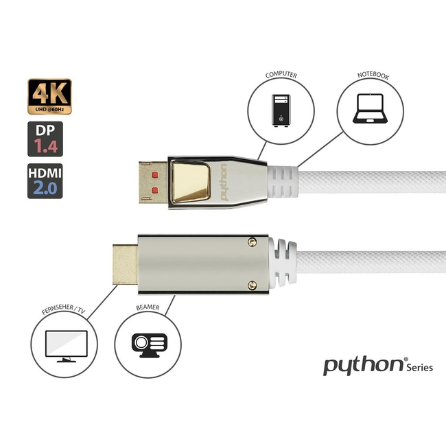 Καλώδιο HDMI Python DisplayPort 1.4 to 2.0 Nylong. White 1m