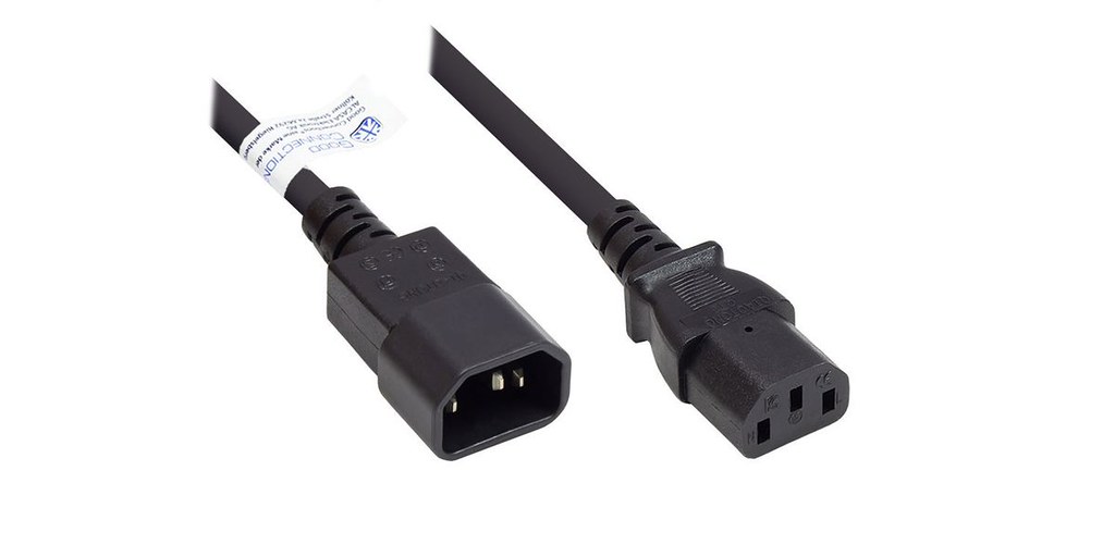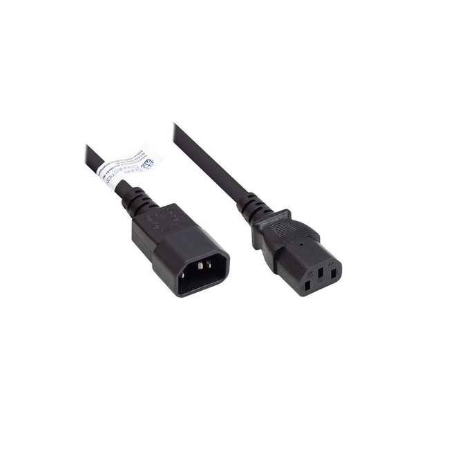 The Goodconnections extension to C13 Black 2m Power Cable is an essential accessory for anyone needing to extend power connections for their electronic devices. This 2-meter power extension cable is specifically designed to connect IEC C14 plugs (male) to IEC C13 sockets (female).