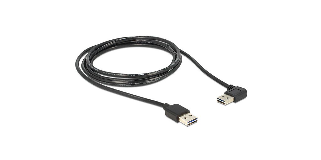 - USB 2.0 Type-A reversible male (angled left/right)