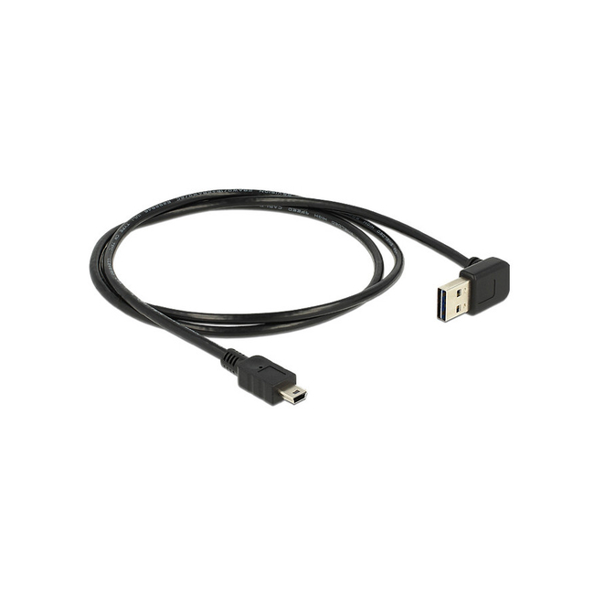 The Delock USB Cable A to Mini-B Male/Male 1.00 m 90° swivel is an essential component for anyone needing a reliable data and charging solution. Featuring a reversible USB Type-A male connector at a convenient 90° angle, this cable enhances connectivity by allowing connections in both orientations. This means you can plug in your devices without any hassle, improving usability and convenience.