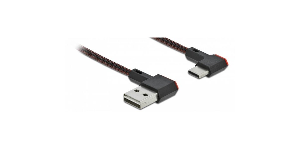 - 1 x USB 2.0 Type-A reversible male (angled), 1 x USB 2.0 Type-C male