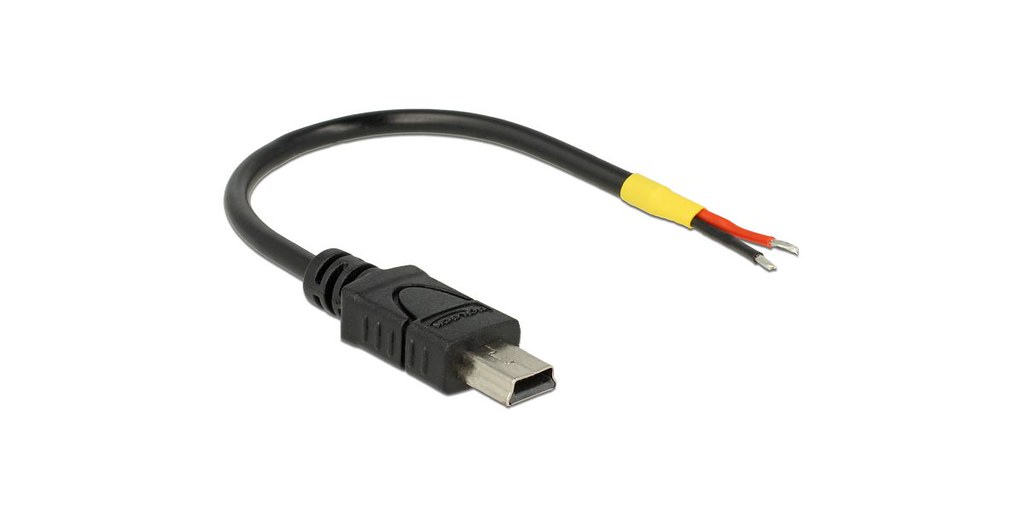 The Delock USB 2.0 Mini-B Male to 2x Open Cable Ends Power Cable is an essential tool for various industrial applications. This cable is specifically designed for power supply via Mini USB ports, making it an excellent choice for Raspberry Pi components and similar devices.