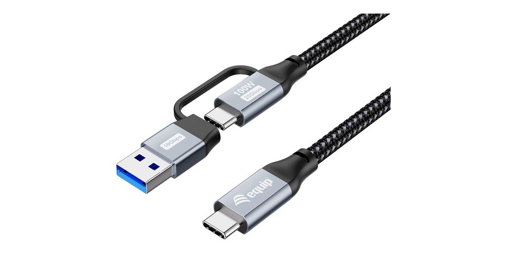The USB Equip-C3.2->C/A Gen2x2 PD100W M/M 3.00m Black cable is built for serious users who demand high-performance connectivity. With USB 3.2 Gen 2x2 technology, it ensures fast data transfer rates up to 20 Gbps and can deliver power at a staggering 100 Watts.