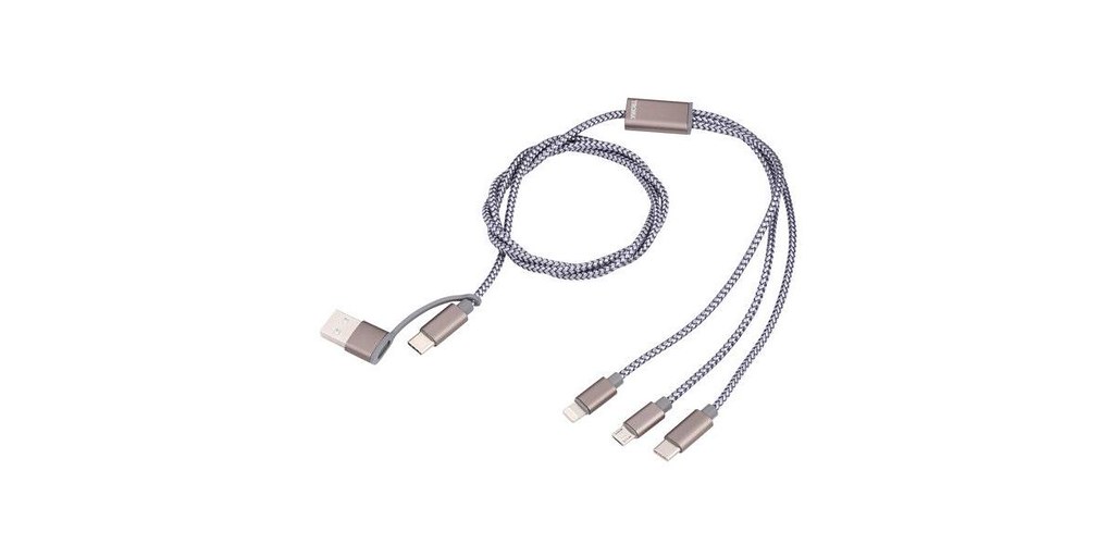 The Troika DREIZACK USB Charging Cable is an innovative 3-in-1 charging solution, expertly designed to accommodate multiple devices simultaneously. With its versatile connectors, including USB-C, Micro-USB, and Lightning, this cable is compatible with a broad range of electronics.