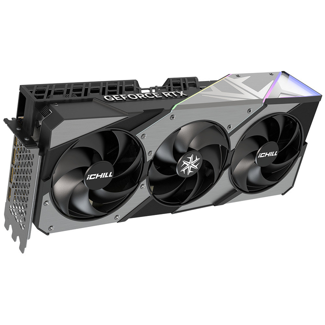 The custom iChill X3 triple-fan cooling system effectively manages thermal output, contributing to durability during high-load sessions. This card also has high power demands, with a Total Graphics Power (TGP) of 360W and a requirement for a minimum 850W power supply.
