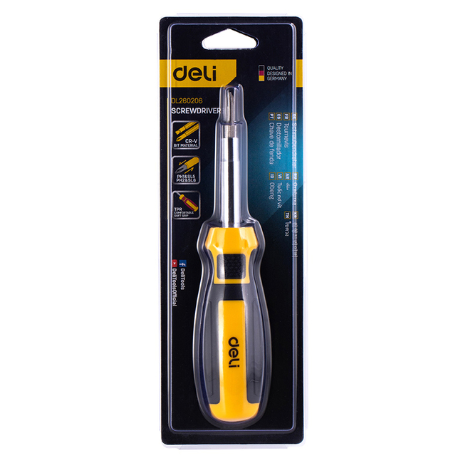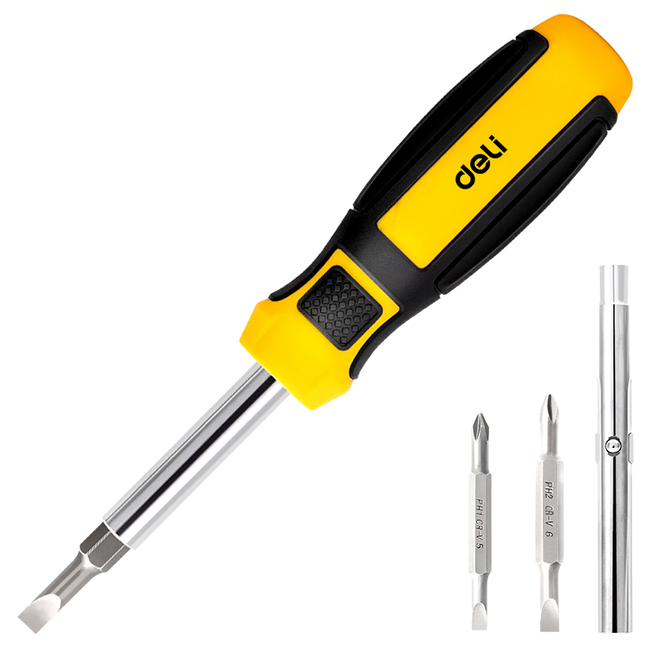 Κατσαβίδι της Deli με ανταλλάξιμες μύτες, ιδανικό για ποικιλία εργασιών σε επαγγελματικό ή οικιακό περιβάλλον.