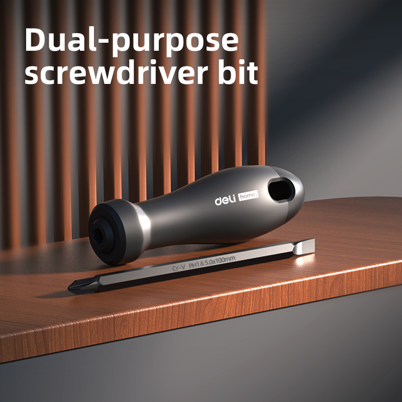 Κατσαβίδι με διπλή αποσπώμενη κεφαλή της Deli, ιδανικό για ποικιλία εργασιών.