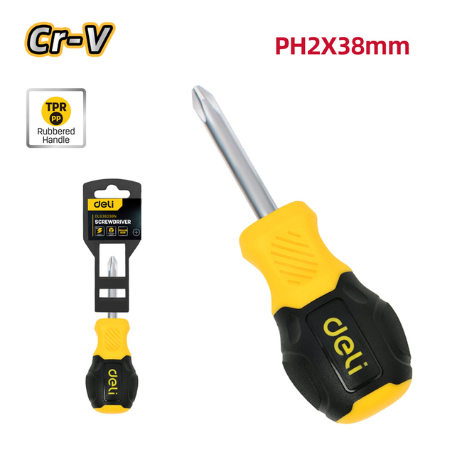DELI κατσαβίδι σταυρωτό DL636038N με αντιολισθητική λαβή, μαγνητικό, PH2x38mm