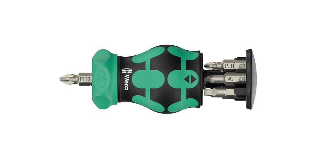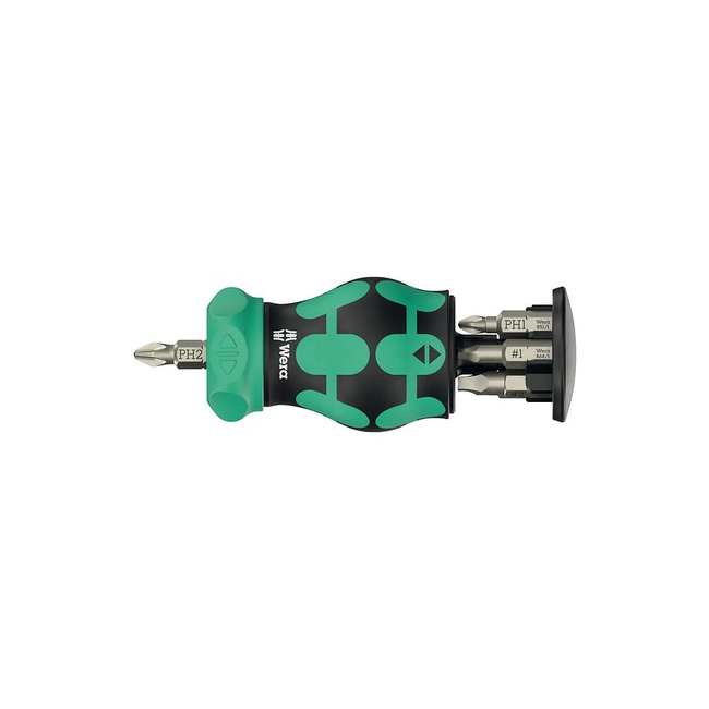 The Wera Kraftform Kompakt Stubby Magazin RA 4 is a compact and versatile ratcheting bit screwdriver set, specifically designed for working in tight installation spaces. Its compact length of approximately 65 mm ensures easy accessibility in confined areas, making it an essential tool for various applications.