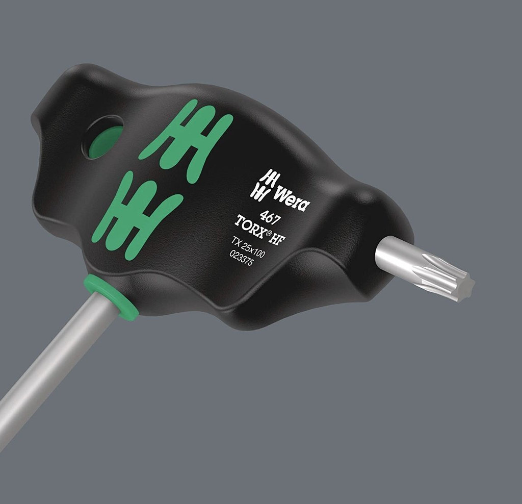 The Wera 467/7 TORX HF Set 2 is an exceptional 7-piece T-handle screwdriver set specifically engineered to handle significant tightening and loosening torque on TORX screws. Ergonomic 2-component handles with finger recesses ensure a comfortable grip, enhancing user experience during extended use.