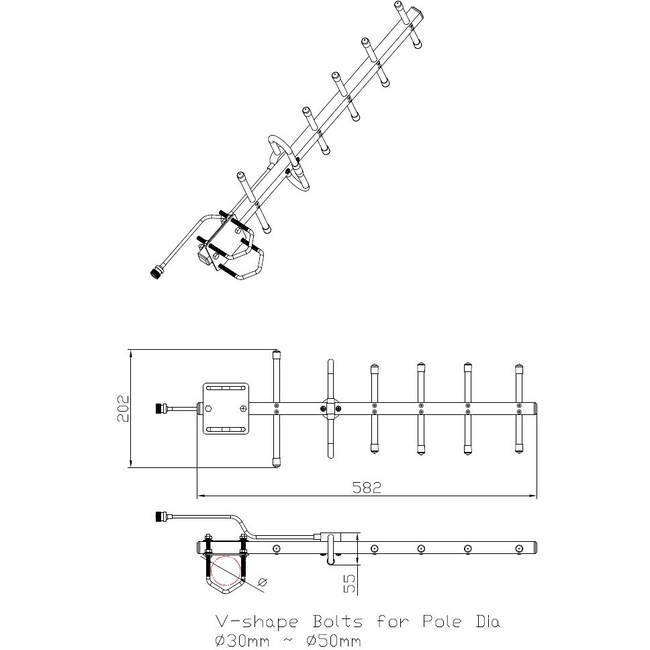 With a working temperature range of -45°C to +75°C and a wind load capacity of up to 200km/h, the ALLNET Yagi antenna is engineered for reliability in challenging outdoor settings.